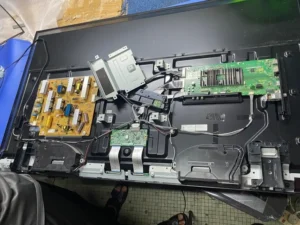 We will order a repair ‘kit’ for your specific TV, and then come to your location and repair it on site. We charge $65 for the service, plus the cost of the repair kit. Prices vary depending on the TV, typically between $50-$150, which will need to be paid up front. Labor costs are only charged once the work is complete.